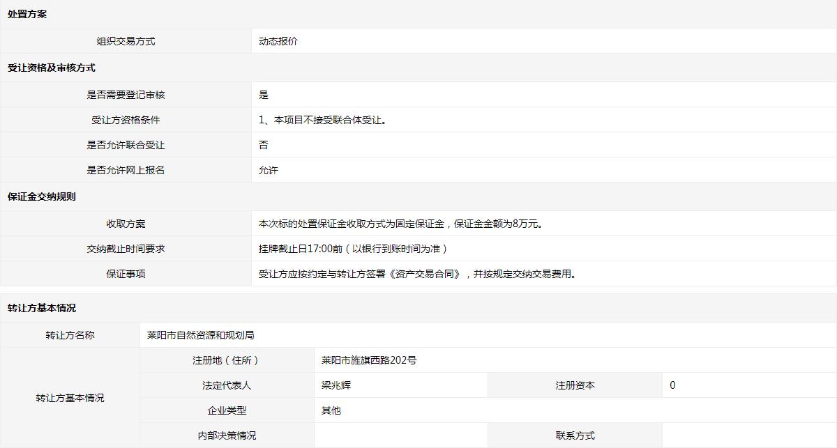• 轉讓方:萊陽市自然資源和規(guī)劃局