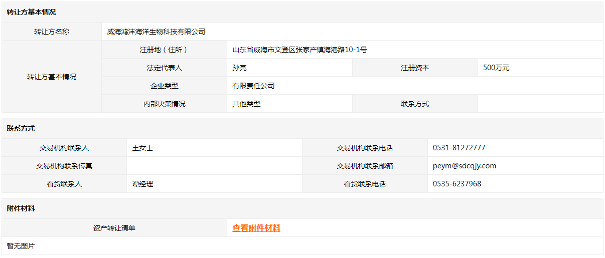 轉讓方:威海鴻灃海洋生物科技有限公司