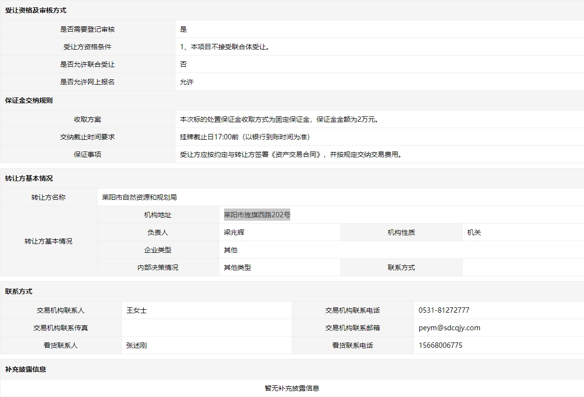 - 轉(zhuǎn)讓方:萊陽(yáng)市自然資源和規(guī)劃局