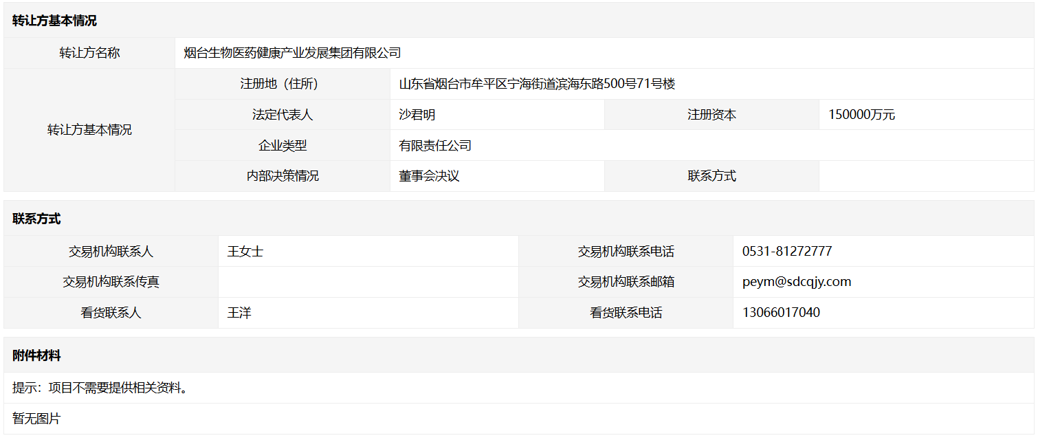 轉讓方:煙臺生物醫(yī)藥健康產(chǎn)業(yè)發(fā)展集團有限公司