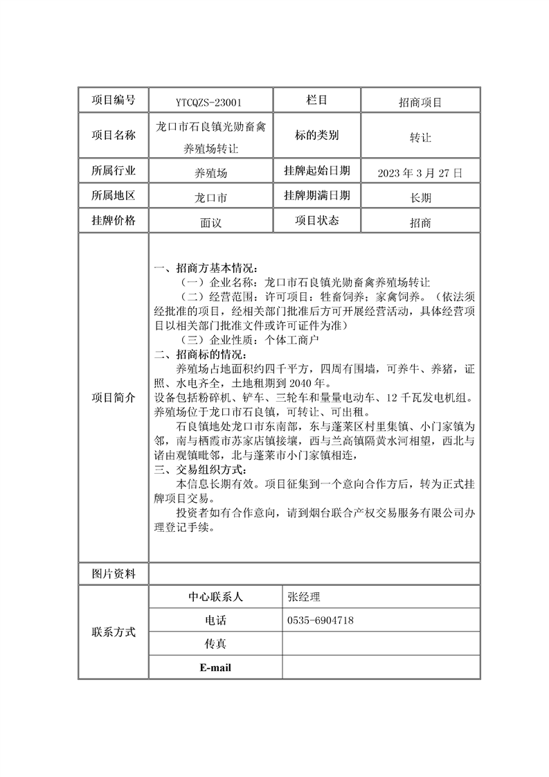 龍口市石良鎮(zhèn)光勛畜禽養(yǎng)殖場轉讓