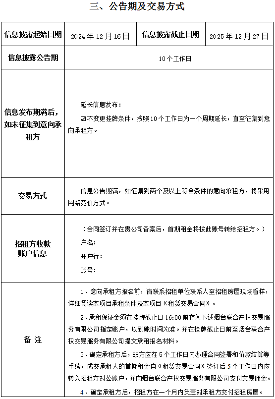 • 掛牌起止日期:2024年12月16日至2024年12月27日