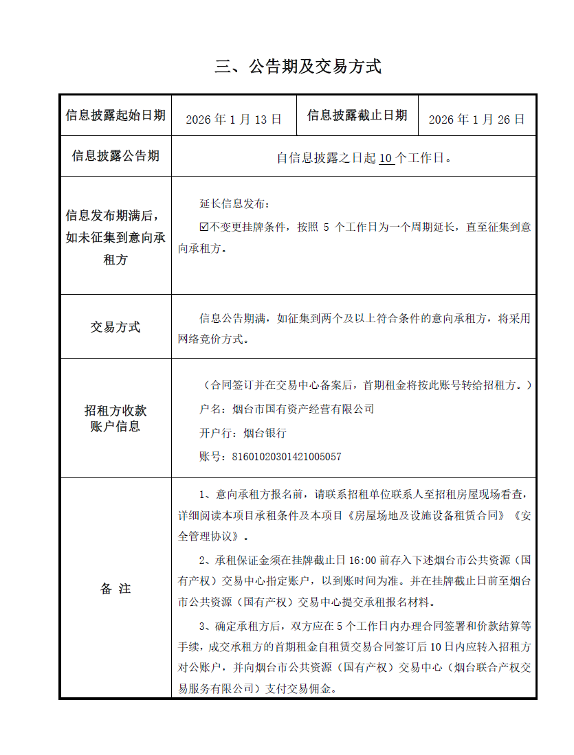 掛牌起止日期:2026年1月13日-2026年1月26日
